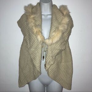 Sisters Faux Fur Sweater Knit Boho Vest S Tan