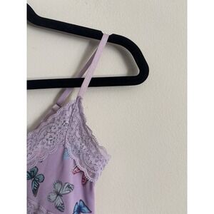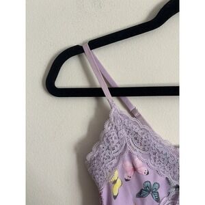 Cute, colorful, and comfortable Forever 21 crop top! Adjustable straps and stretchy fabric for a comfortable fit. Cute lace detail, mesh fabric, and all over butterfly design. Trendy and cute lettuce hem, feels very 90s 2000s Y2K.
