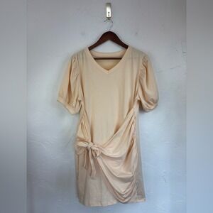 NEW V Neck Cream Off White T Shirt Wrap Dress Short Sleeve Bow Tie Medium Puff