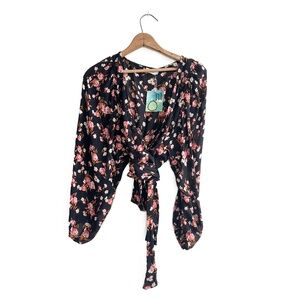 A.L.C. Black/Pink Floral Silk Carla Wrap Top - Size 2