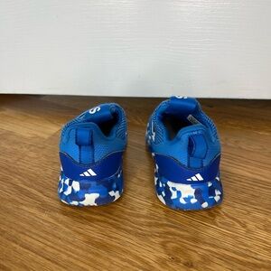 Comfortable and easy-to-wear Adidas kids sneakers in a bright blue colorway with a fun camo-style outsole. Designed for active kids, these slip-on shoes feature elastic lacing for quick on-and-off and a lightweight, flexible sole ideal for school, play, and everyday wear.