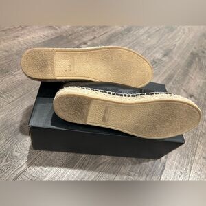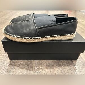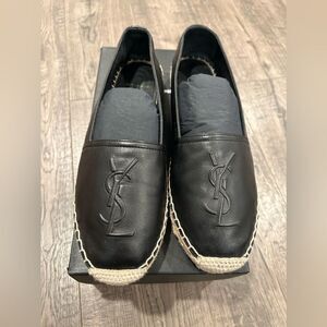 YSL Saint Laurent Black Nappa Leather Espadrilles Flat Shoes Logo