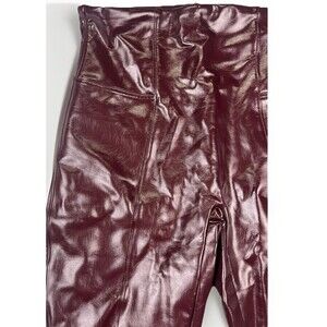 NEW Spanx Faux Patent Leather Leggings Womens Size Large Ruby Red High Rise