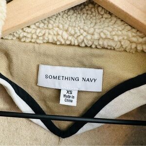 Something Navy Sweatshirt Teddy Fleece Jacket Zip Plush Black Tan Extra Small