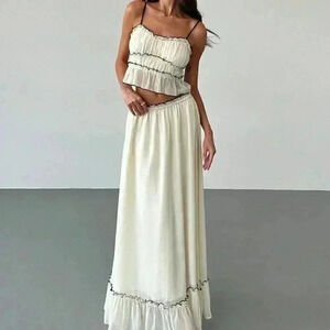 Apricot Casual Women's Vacation Contrast Trim Layered Camisole Top & Skirt