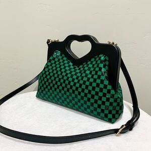 Handmade Genuine Cowhide Check Embossed, Chic Heart Shaped Wooden Frame Satchel