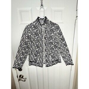 Valerie Stevens Black/White Blazer Jacket W/Fringe Trim Size Med Career