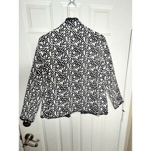Elevate your wardrobe with this stylish Valerie Stevens blazer jacket. The black and white geometric pattern is eye-catching and perfect for any occasion, whether it's casual or for business. The jacket has a short length and long sleeves, with a regular fit that flatters any body type.