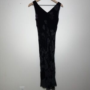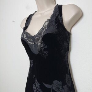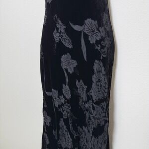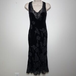 VTG Y2K 90s Women Fairy Grunge Velvet Burnout Silk Evening Slip Dress Midi Lace Trim Goth Floral Dark Romantic