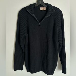 VINTAGE RICA LEWIS Black Wool Blend Quarter Zip Heritage Pullover Sweater Size L