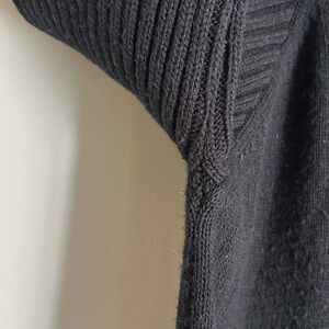black quarter zip sweater, dark academia, vintage sweater, wool blend, ribbed sleeves, mock neck, classic, closet staple, capsule wardrobe, warm layering, office, career, business casual, autumn, fall, winter, timeless, cabincore, utility, preppy, minimalist
