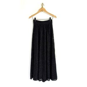 Sezane Maxi Pleated Embroidered Nae Black Skirt