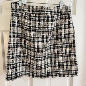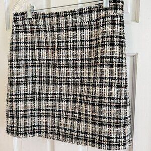 Loft Women’s Sz 4 Tweed A-Line Black/Tan/White Skirt Bouche Lined Skirt Career