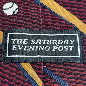 Three vintage ties!! Saturday Evening Post classic for the baseball fan. Two vintage ties, one striped and one solid green. Baseball tie length is 56 inches. The striped and solid green are 54 inches in length. Good preowned condition.
