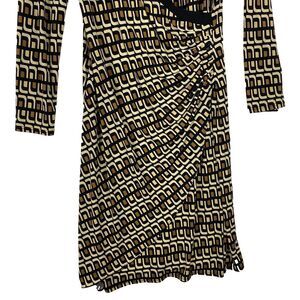 Frank Lyman Tan & Black Fixed Wrap Style Geometric Flattering Jersey Dress US 12