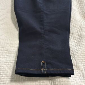 Stylish and comfortable dark blue denim Pedal Pusher perfect for any occasion. These pants offer a flattering fit and versatile style.