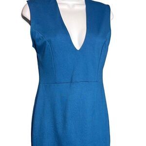 Akira Chicago Women's Sheath Dress V Neck Mini Sleeveless Stretch Blue Large