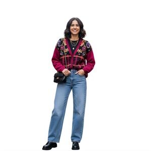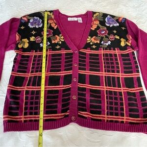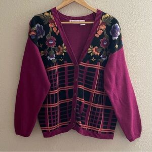 Vintage That's Me! Embroidery Flowers Sweater Cardigan L