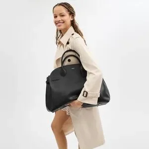 Natural grain leather Inside snap pocket Inside lanyard with dogleash clip Zip-top closure fabric lining Handles with 4 1/2 drop Detachable strap with 21 1/2 drop for shoulder or crossbody wear Four protective feet at base Fits a 16 laptop 18 3/4 (L) x 13 3/4 (H) x 7 (W) Style No. CW617