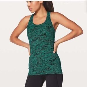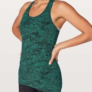 Lululemon Kitakami Viridian Green Black Racerback Active Tank Top Women Sz XS