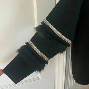SIONI Blk VNeck sweater Sequin Fringe Detail LongSleeve M whimsigoth SWIFTY glam
