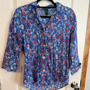 Ralph Lauren floral button-down shirt with 3/4 length roll-cuff sleeve