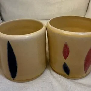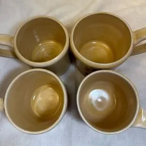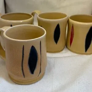 4/ studio art mugs. Tan with Black and Red Accents