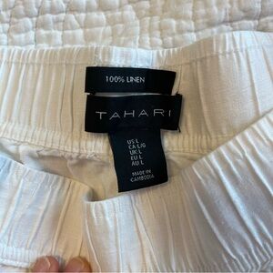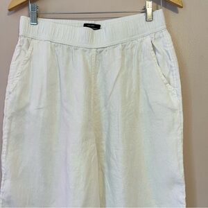 Lightweight and breezy elastic waist pull-on 100% linen pants from Tahari. Perfect for summer. White. Wide leg, high rise, crop ankle length. Pockets!
