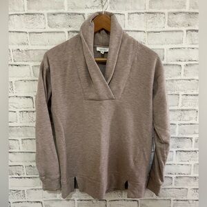 Women’s Haven Well Within tan pullover fleece shawl collar top soft oversized XS