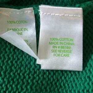 100% combed cotton, drop shoulders, side slits, roll at neck, cuffs, and hem. Approximate measurements taken flat: