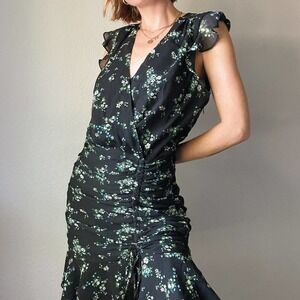 Banana Republic Black Floral Ruched Wrap Ruffle Mini Dress