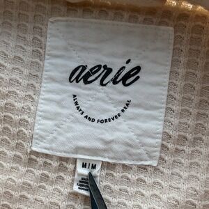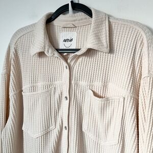 Aerie Anytime Fave Waffle Oversized Button Shirt Womens Medium Cake Batter Cream