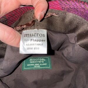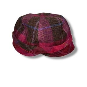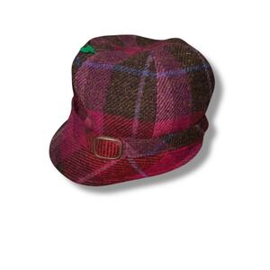 Mucros Weavers Irish Tweed Flapper Hat Plaid Pink Brown Adjustable One Size