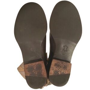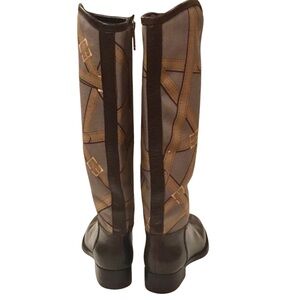 Tory Burch FELIX Riding Boots Brown Leather Equestrian Print Fabric Zip Size 6