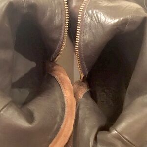 Tory Burch FELIX Equestrian Canvas Fabric & Leather Tall Riding Boots. Size: 6M