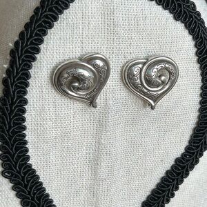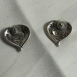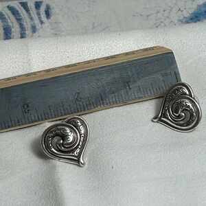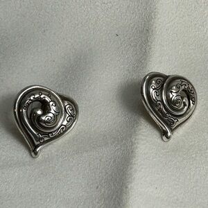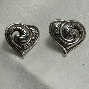 Brighton Penelope Heart Earrings Studs Swirl Silver Plated About 1"