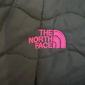 The North Face Black Quilted Jacket with Pink Logo