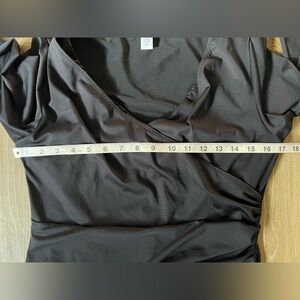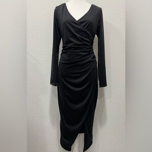POPILUSH Shapewear Ruched Long Sleeve Faux Wrap Slimming Midi Dress EUC