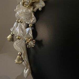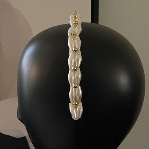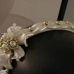 Beautiful Vintage 90’s Faux Pearl and Floral Headband with Gold tone Accents