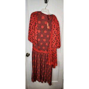 Diane Freis Georgette Red Polka Dot Maxi Dress Pleated Attached Scarf Sz Large