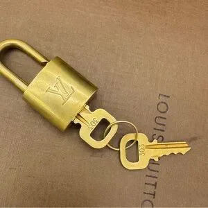 Authentic Louis Vuitton solid brass padlock paired with two matching original keys — a classic vintage LV accessory that’s perfect for collectors or statement styling.