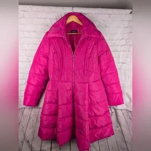 Mod X Bright Pink Quilted Puffer Women's Coat Swing Bottom Sz XL