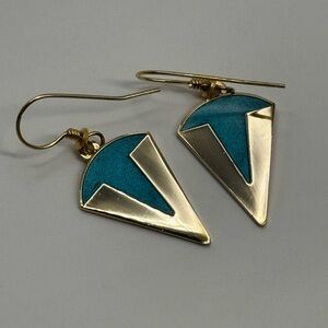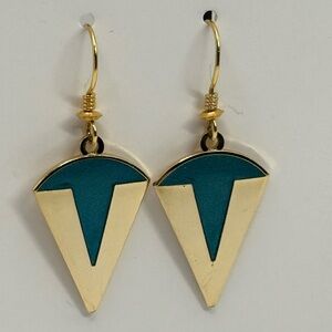Roccoco Vtg 80s Aqua green geometric dangle hook Earrings