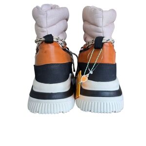 The product is a rare and stylish pair of Farm Rio off white matelasse puffy boots in size 11. These boots are designed for women and feature a unique and eye-catching white color. The off-white brand adds a touch of sophistication to these fashionable and trendy boots, making them a standout addition to any wardrobe. Perfect for adding a touch of elegance to any outfit, these boots are a must-have for any fashion-forward woman.