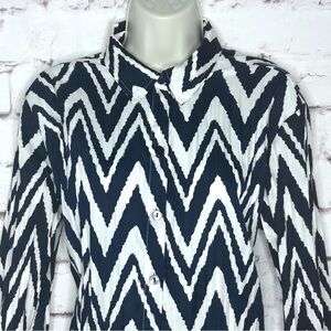 CHICO’S Navy & White Chevron crinkle coverup shirt Medium blouse Chico’s Size 1