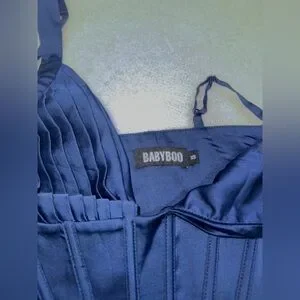 This elegant navy blue dress features a flattering ruched design, perfect for any occasion. Its sophisticated style and rich color make it a must-have addition to your wardrobe.