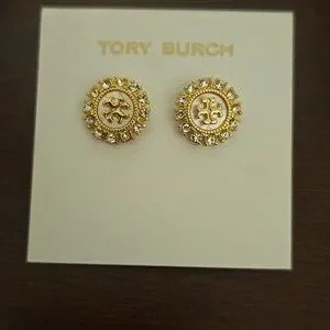 NWT Tory Burch Moondance Mother Of Pearl Crystal Stud Earrings MSRP $150