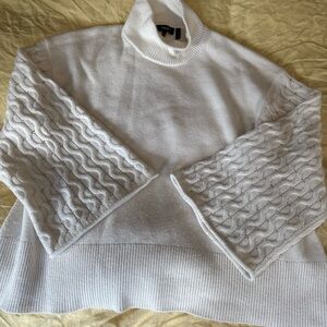 Theory 100% Cashmere Textured Sleeve Turtleneck Sweater – Ivory, Women’s M