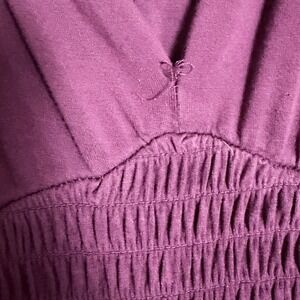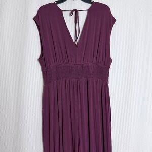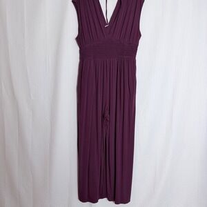 Keywords: plum, purple, smocked, waist, wide leg, jumpsuit, romper, XL, sleeveless, V-neck, tie back, casual, loungewear, athleisure