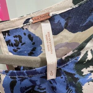 Free People Maye Poplin Tunic dress in a blue floral pattern.